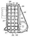 ホルダーケースに複数の電源モジュールを収納して、各々の電源モジュールをより均等に冷却する構造は、たとえば、特開平10−270095号公報と特開平11−329518号公報に記載される。前者の公報に記載される電源装置は、図1の断面図に示すように、ホルダーケース22の下部を空気の流入口23として上部を排出口24とし、下部の流入口23から上部の排出口24に空気を流動させて、内部に収納している電源モジュール21を冷却する。ホルダーケース22の内部には、電源モジュール21の表面に流す空気の流速を調整するための冷却調整フィン25を配設している。
