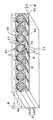 ホルダーケース2は、図3と図4に示すように、両面に対向して、第1表面プレート2aと第2表面プレート2bを有する箱形で、第1表面プレート2aと第2表面プレート2bと平行な面内に、複数列に電源モジュール1を同一平面に横に平行に並べて配設している。