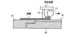 先ず、コーティング部10には図10に示すようにスリットノズル11が往復動可能に配置されている。このスリットノズル11には移動方向を基準として下流側にスキージ12が取り付けられ、スリットノズル11から塗布された塗膜の厚みを均一にならすようにしている。