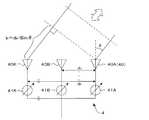 全てのアンテナ素子40A、40B、・・・40Kが同じ位相で電波を送信する場合には、スキャンアンテナ4から放射される電波はブロードサイド方向(アンテナ素子40A、40B、・・・40Kの配列方向に垂直な方向)の平面波として伝搬する。一方、電波の伝播方向を、ブロードサイド方向から測って角度θ(rad)だけ傾斜させるためには、次式を満たすように各アンテナ素子40A、40B、・・・40Kが送信する電波の位相をずらせばよい。  When all the
