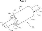 図7は、本発明の更に別の例示の実施例によるカテーテル500の斜視図である。このカテーテル500は細長いシャフト502を含む。このシャフトは、先端504、基端(図7には示さず)、及び外面506を有する。カテーテル500の本体部材530は細長いシャフト502の周囲に配置される。本体部材530は複数の流れチャンネル536を画成する。  FIG. 7 is a perspective view of a