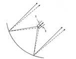 この公報には、球面状のルーネベルグレンズの焦点位置に複数の一次放射器を備えたルーネベルグ型アンテナが記載される。この構造のルーネベルグレンズアンテナは、図1に示すように、互いに接近する方向から入射される電波を受信するためには、一次放射器1を互いに接近して配置する必要がある。互いに接近する焦点に一次放射器1を配置するからである。また、図2に示すようにパラボラアンテナも、電波を集束させる反射器の焦点に一次放射器1を配置する。このため、互いに接近する方向から入射する電波を受信すると、焦点が接近するので一次放射器1を近くに配置する必要がある。