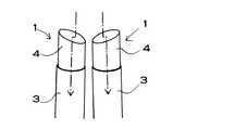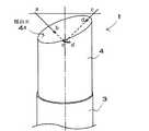 偏心誘電体アンテナ4は、図6に示す構造とすることもできる。この偏心誘電体アンテナ4は、先端部に高誘電体層4Aを設けて、高誘電体層4Aの先端面を傾斜平面4aとしている。この偏心誘電体アンテナ4は、アンテナ本体部4Bの先端に高誘電体層4Aを積層している。高誘電体層4Aは、その誘電率がアンテナ本体部4Bの誘電率よりも高い。この偏心誘電体アンテナ4は、高誘電体層4Aとアンテナ本体部4Bの両方を、比誘電率を1.5〜3.5とする誘電体で製作している。この偏心誘電体アンテナ4は、図5の偏心誘電体アンテナ4と同じ原理で、高誘電体層4Aが位相中心を偏心させる。