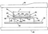 次に図4を参照すると、本発明に基づくデュアル・バンド・ダイバーシチ・アンテナ20が、無線電話などの通信装置の上部および下部ハウジング部分60a,60b内に設置された構成で示されている。当業者なら分かることだが、ハウジング部分60a,60bは回路板54およびダイバーシチ・アンテナ20を取り囲むように構成される。アンテナ20は、遮蔽缶52の上にこれと空間的に離して保持される。遮蔽缶52は回路板54の上に横たわり、回路板に固定されたさまざまな超小型電子構成部品(図示せず)に対して電磁干渉(EMI)遮蔽を提供する。遮蔽缶52は、アンテナ20の接地面の動きをする平らな外面53を有する。