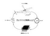 はじめに、ヘリコプタを自律制御させるしくみを論理的に説明する。ヘリコプタは制御の対象であり、サーボモータの動作によって姿勢を変えたり、3次元的に移動したりできる飛行体である。自律制御による飛行はヘリコプタを位置や速度の目標値にしたがって移動させることを目的とし、その操縦は演算用のコンピュータの演算結果に従うものである。コンピュータにヘリコプタの操縦を代替させるには、演算用コンピュータにセンシング機能及びアクチュエーション機能を持たせる必要がある。ヘリコプタの各種飛行状態をセンシングする機能を持つ装置をセンサと呼び、また、コンピュータの演算結果により制御指令値を決定し、それを信号に変換した自律制御信号を受けてヘリコプタの舵を動かすアクチェータをサーボモータと呼ぶ。そして、[<センサ>・・・<演算用コンピュータ>・・・<サーボモータ>・・・<ヘリコプタ>(図17参照)]を結ぶフィードバック制御ループにより、ヘリコプタを目標値に向けて自律制御させることができる。