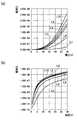 このような容量結合動作型双方向ダイオード素子1dでは、ゲート電極3dとソース電極6fとの間、およびゲート電極3dとドレイン電極6gとの間に寄生容量Csが発生している場合でも急峻なI−V特性が得られる。すなわち、図7(a)、(b)には、容量結合動作型双方向ダイオード素子1dにおける対寄生容量比k(=容量素子1zの容量CL/寄生容量Cs)を変化させた場合のI−V特性と、図5に示した双方向ダイオード素子DiのI−V特性を比較して示してある。図7(a)、(b)において、線L1、線L2、線L3、線L4、線L5で示す特性は、容量結合動作型双方向ダイオード素子1dにおける対寄生容量比kが1、2、5、10、20の場合のI−V特性を示し、線L10で示す特性は、図5に示した双方向ダイオード素子DiのI−V特性を示す。