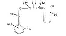 本発明の装置はさらに毛管停止構造を有していてよく、この毛管停止構造により、毛管流体流れは、所定の箇所で実質的に中断される。毛管停止構造は、高い毛管力の流れチャネル又は空間の端部における低い毛管力の流れチャネル又は空間、又は、高い毛管力の2つのチャネルの間の低い毛管力の流れチャネルを含んでいる。流体は、高い毛管力のチャネルの端部において停止し、低い毛管力の流れ空間へ進入しない。