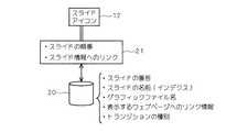 請求項21に記載の発明は、請求項17に記載のコンテンツ作成方法であって、それぞれの前記スライドアイコンを定義するデータが、前記スライドの前記シナリオ通りの順序に対応した前後のスライドアイコンを特定する前後スライド特定情報を保有し、当該前後スライド特定情報に基づいて、前記第1の画面領域内での前記スライドアイコンの配置順序が決定されるものである。