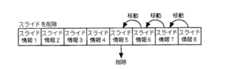 しかしながら、これらの確認を行う場合は、各素材データを登録して各スライド2を個々に編集する標準モード(図19)において、複数のスライド4を視認することができず、上述のように、一旦全てのスライド4を作成し終えた時点で、その標準モードまたはスライドショーモードでスライド4を切り替えていくか、あるいはプレビュー表示モード(図20)に切り替えてサムネイル6で確認しなければならなかったため、シナリオ展開を考慮したコンテンツの作成に手間がかかっていた。