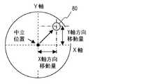X軸位置信号取得回路70は、ジョイスティック80のX軸方向の移動量に相当するアナログ信号を取得し、Y軸位置信号取得回路71は、ジョイスティック80のY軸方向の移動量に相当するアナログ信号を取得する。例えば、図3に示すように、ジョイスティック80の中立位置からの操作量をX軸及びY軸の各軸方向の移動量で取得する。  The X-axis position