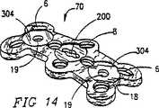 図14は、固定リベットとともに使用する頚椎の複合固定プレートの上斜視図である。