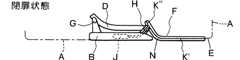 図1、図2は、従来の車体Aとスライド扉Bの基本的配置関係を示している。車体Aの出入口Cの下部近傍にはロワーレールDが固定され、車体AのクオータパネルEにはセンターレールFが固定される。スライド扉Bには、ロワーレールD及びセンターレールFにそれぞれスライド自在に係合するロワーローラーアームユニットGと、センターローラーアームユニットHとが設けられる。各ローラーアームユニットG、Hは、スライド扉Bに揺動自在に軸止される。これらのローラーアームユニットとレールとの間のスライド係合により、スライド扉Bは開扉方向及び閉扉方向に移動可能となる。1 and 2 show a basic arrangement relationship between a conventional vehicle body A and a sliding door B. FIG. A lower rail D is fixed near the lower part of the entrance / exit C of the vehicle body A, and a center rail F is fixed to a quarter panel E of the vehicle body A. The slide door B is provided with a lower roller armunit G and a center roller armunit H that are slidably engaged with the lower rail D and the center rail F, respectively. Each roller armunit G, H is sealed shaft swingably in sliding door B. By sliding engagement between these roller armunits and the rail, the slide door B can move in the door opening direction and the door closing direction.