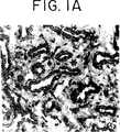 図2は増殖対分泌子宮内膜中のインテグリンサブユニットα1に関する免疫組織化学的染色の顕微鏡写真を示す。腺上皮における染色(←)は増殖段階(A)ではほとんど存在せず、そして月経周期14日(B、20日の子宮内膜)後には全ての部分で顕著である。微小血管(←)染色も顕著であり、そして月経周期全体にわたり変化しなかった。分泌子宮内膜腺で見られる染色は背景(C)のものより相当高かった。倍率:125X。