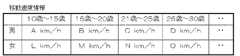 図2は、移動速度データベース8に格納される情報を説明するための図である。図2を参照すると、移動速度データベース8は、ユーザの年齢、性別に応じた歩行速度の平均値を取り出し可能に記憶保持している。例えば、21歳から25歳までの男性についての適用すべき移動速度は、時速Ckm/hである。もちろん、操作部4で入力することによって、移動速度データベース8にユーザ固有の移動速度を登録できるようにしてもよい。
