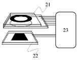 本素子を用いた好ましい撮像素子の例を図14に示す。各電極群に所望の電圧を印加する駆動回路23と素子を通過する光量を測定する光量測定手段22を備えている。光量測定手段22はどのようなものでも良い。例えば電荷結合素子などの撮像素子36を光量測定手段22に用いて、その出力に依存して適切な透過率になるように駆動回路23により電気泳動光量調整素子21を制御すればよい。