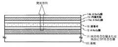 また、上記各構成における上記AlNXOYで示される層、AlXNYで示される層により、素子の発熱を拡散させて素子の劣化を抑える効果とともに、プラスチック基板の変形や変質を保護する効果を有する。