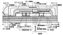 本明細書において、円偏向板とは、OLEDを有する発光装置で背景が映り込むことを防止する反射防止手段を指しており、具体的には位相差板(λ/4板)、位相差フィルム、或いは位相差膜と、偏光板、偏光フィルム、或いは直線偏光膜との組み合わせからなる円偏光板(楕円偏光板を含む)を指している。なお、陰極などによる反射によって観測者の顔や天井などの背景が発光装置の表示部に映ることを背景の映り込みと呼んでいる。具体的には、偏光板の偏光軸と、位相差フィルムの偏光軸とのなす角が45°になるように設置したものを円偏光板と呼んでいる。こうして設置されると、外部から入射された偏光板を通過した光は直線偏光となり、位相差フィルムで45°ねじられ、楕円偏光となり、さらにこの楕円偏光が陰極で反射し、位相差フィルムで直線偏光となり。この直線偏光と偏光板の偏光軸のなす角が90°になるので、反射光は偏光板に吸収される。よって、観測者には映り込みが見えないように、発光装置に位相差フィルムと偏光板が設置されている。このように、円偏光板を用いることによって発光装置の外部から入射して陰極で反射された光が、再び外部に出ないようにしている。なお、本明細書において、円偏向板とは、円偏向フィルムをも含むものとする。