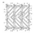 図1に、作製した液晶表示装置を説明する模式平面図を示し、図2に、図1のII−II線断面図を示す。一方のガラス基板16に、遮光用のブラックマトリクス34と色分解フィルタ(カラーフィルタ)39が形成され、色分解フィルタ39の上一面にITOの共通電極12が形成されている。ガラス基板16には、更にジグザグ状に突起20が形成され、また補助突起20’も形成されている。他方のガラス基板17には、複数本の平行なゲートバスライン31、ゲートバスライン31と垂直方向に平行に形成された複数本のデータバスライン32、ゲートバスライン31とデータバスライン32との交点に対応してマトリクス状に形成されれた薄膜トランジスタ(TFT)33、そしてITOの表示画素電極13が設けられている。ゲートバスライン31は、絶縁膜51によりデータバスライン32から切り離され、そしてデータバスライン32と同じ層にTFT33のソース・ドレイン電極が形成されている。データバスライン32の層上には絶縁膜52が形成され、更にその上に画素電極13が形成されている。画素電極13には、図1の平面図で突起20と平行に、且つ隣り合う突起20の中間の位置に、スリット21が設けられている。ゲートバスライン31と平行に、且つ隣り合うゲートバスライン31の中間の位置には、各画素電極13の電位を安定化するための補助容量用にCs電極35が設けられている。図2に見られるように、共通電極12と画素電極13とが対向するように2枚のガラス基板16、17を組み合わせ、それらの間に液晶組成物(図示せず)が保持される。共通電極12と画素電極13の表面には配向制御膜が形成されているが、簡単にするため、図2にこれらは図示していない。同様に、ガラス基板16、17のおのおのの外面側に貼付する偏光板も、簡単にするため、図2には図示していない。