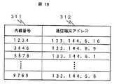 図18は、図17のステップ305で参照する内線番号管理テーブルの構成を示す。311は内線番号、312は内線番号に対応する通信端末アドレスである。なお、通信サーバがLANに接続された通信端末の台数分の電話番号を持つ場合は、内線番号311の欄を、各通信端末に割当てられた電話番号とすればよい。  FIG. 18 shows the configuration of the extension number management table referred to in