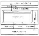 ここで、アプリケーションプログラムは、クラスライブラリAPI(アプリケーションインターフェース)を介して上記アプリケーション実行環境内にある関数等のクラスライブラリを呼び出して使用できるようになっている。この関数等のクラスライブラリの呼び出しの履歴は、アプリケーションプログラムの仮想的な実行環境(仮想マシン:VM)が終了するまで、RAM202内におけるアプリケーション用記憶領域に記憶される。また、アプリケーション実行環境は、アプリケーションプログラムの実行に際して用いる各種データも、そのアプリケーション用記憶領域に保存する。そして、この各種データを用いるときには、このアプリケーション用記憶領域から読み出したり、書き込んだりする。また、アプリケーション実行環境内の実行環境管理ライブラリは、電話機プラットフォームAPIを介して後述の電話機プラットフォーム内の電話機プラットフォームライブラリを呼び出して使用できるようになっている。  Here, the application program can be used by calling a class library such as a function in the application execution environment via a class library API (application interface). The call history of the class library such as this function is stored in the application storage area in the