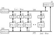 また、第1および第2の共有バス上の前記制御系データおよび前記入出力データを転送経路およびアドレス範囲の一致に応じてスヌーピングしデバグ用メモリに記憶するデバグ用処理要素を備えている。