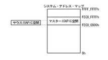 図7は、本発明のコンピュータシステムのシステム・アドレス・マップの例を示している。マスターIOAPIC12は、例としてFEC0_0000h〜FEC7_FFFFhにマップされ、設定などもこの空間を介して行われる。サウス・ブリッジ6内のIOAPIC36のアドレス空間はマスターIOAPIC12のアドレス空間の一部と重なっている。こうして、本発明のコンピュータシステムでは、アクティブ・サウス・ブリッジ6内のIOAPIC36はCPU2あるいはOSから隠蔽されて不可視状態にある。しかしながら、アクティブ・サウス・ブリッジ6内のIOAPIC36の設定を行うことは必要であるので、サウス・ブリッジ6内のIOAPICのアドレス空間は、マスターIOAPIC12のアドレス空間により覆い被されている。  FIG. 7 shows an example of a system address map of the computer system of the present invention. The