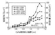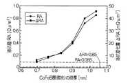形成されたMR膜43には熱処理が施された。MR膜43は2[T]の磁界中で3時間にわたって摂氏280度の高温に曝された。こうしてPdPtMn層は規則化された。この検証では複数種類のMR膜43は用意された。酸素ガスに曝されるCoFeB層の膜厚は個々のMR膜43ごとに異なる値に設定された。
