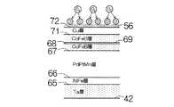 積層素材膜の形成にあたって、平坦化面42には、例えば図12に示されるように、下地層51に削り出されるTa層65およびNiFe層66や、磁化方向拘束層52に削り出されるPdPtMn層67、固定側強磁性層53に削り出されるCoFeB層68、Ru層69およびCoFeB層71、並びに、導電層55aに削り出されるCu層72が順番に積層形成される。こういった積層にあたっては真空チャンバ内で例えばスパッタリングが実施されればよい。