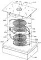 可動磁石アクチュエータは導電性コイルの運転によって、拡張されたノズルチャンバ容量を有する第1の位置から、収縮したノズルチャンバ容量を有する第2の位置へ移動可能である。この装置はさらに、休止状態において、第1の位置で可動磁石アクチュエータにバイアスをかけるため、可動磁石アクチュエータに取り付けられた少なくとも一つの弾性部材を含む。少なくとも一つの弾性部材はリーフバネを有する。 The movable magnet actuator is movable by operation of the conductive coil from a first position having an expanded nozzle chamber volume to a second position having a contracted nozzle chamber volume. The apparatus further includes at least one elastic member attached to the movable magnet actuator for biasing the movable magnet actuator in the first position in the resting state. At least one elastic member has a leaf spring.