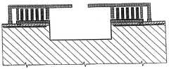 本発明の別の観点では、インクジェット印字ノズル装置はインクの排出のための排出口を有するインク排出チャンバを有して構成される。インク排出チャンバは、排出すべきインクを供給するインク槽と連通している。そして、少なくともチャンバの一つの壁は、排出チャンバからインクの排出を引き起こすためローレンツ力を用いて駆動される可動隔壁を有する。可動隔壁は波形がつけられ、又は折りたたみ伸縮可能な形状であり、埋め込まれた伝導性コイルを有する。伝導性コイルの電流と静止磁場の間のローレンツ相互作用により隔壁が作動すると、隔壁は折りたたみ伸縮作用によって伸張可能である。隔壁は適切なハーフトーンマスクを利用して形成されることが好ましい。インクジェット印字ノズル内のインクチャンバは、シリコンウエハの等方性エッチングを用いて形成される。 In another aspect of the present invention, the ink jet print nozzle device includes an ink discharge chamber having a discharge port for discharging ink. The ink discharge chamber communicates with an ink tank that supplies ink to be discharged. At least one wall of the chamber has a movable partition that is driven using Lorentz force to cause ink ejection from the ejection chamber. The movable bulkhead has a corrugated or foldable shape and has an embedded conductive coil. When the partition is actuated by Lorentz interaction between the current of the conductive coil and the static magnetic field, the partition can be expanded by the folding and stretching action. The partition walls are preferably formed using an appropriate halftone mask. The ink chamber in the inkjet printing nozzle is formed using isotropic etching of a silicon wafer.
