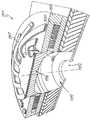 本発明の別の観点は、本発明の先述の観点に基づいて構築されたインクジェット印字ノズル装置を提供することである。該装置のプランジャは、一つの表面に沿って、一連のスロットが形成されている。この表面は、プランジャと電気コイルの間の空洞を規定する内部の放射状の表面を形成している。更に、更にプランジャの、形成された空洞の上部壁を規定する上面には、流体流動スロットが形成されていない。電気コイルにより生じたプランジャの下方への移動により空洞寸法が減少すると、インクはスロットよりノズルチャンバ内に流入し、インク排出穴からのインクの排出を助けるように作用する。好ましくは、スロットは、実質的に均一な断面形状を有することが望ましい。 Another aspect of the present invention is to provide an ink jet print nozzle device constructed in accordance with the foregoing aspects of the present invention. The plunger of the device is formed with a series of slots along one surface. This surface forms an internal radial surface that defines a cavity between the plunger and the electrical coil. Furthermore, no fluid flow slot is formed on the upper surface of the plunger defining the upper wall of the formed cavity. When the cavity size is reduced due to the downward movement of the plunger caused by the electric coil, the ink flows from the slot into the nozzle chamber and acts to help discharge the ink from the ink discharge hole. Preferably, the slot has a substantially uniform cross-sectional shape.