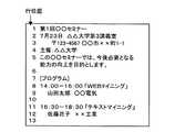 例えば,イベント情報テンプレートの1行目において,抽出属性名「イベント名」の属性値は,「イベント名」を表すパターンであり,その見出し語として,「名称」が考えられる。「イベント名」を表すパターンに一致した文字列が文書中に出現した場合には,その前に,対応する見出し語がなくても,その文字列を,抽出属性名「イベント名」に対応付けることを示す。 For example, in the first line of the event information template, the attribute value of the extracted attribute name “event name” is a pattern representing “event name”, and “name” is considered as the headword. If a character string that matches the pattern representing "event name" appears in the document, associate that character string with the extracted attribute name "event name" even if there is no corresponding headword before it. Indicates.