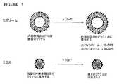 別の全く予期しなかった知見は、この材料が高エネルギープロセス(例えば、微小流動化)に供された場合、ある割合の不飽和荷電脂質を含む二層形成リン脂質は、ミセル構造(疎水性分子の組込みのあるかなしか)を想定し得ることであった。二層形成脂質からのミセルの生成は、完全に新規であると考えられ、そして二層形成脂質に関する文献から予測されていない。 Another totally unexpected finding is that when this material is subjected to high energy processes (eg, microfluidization), bilayered phospholipids containing a proportion of unsaturated charged lipids have a micellar structure (hydrophobic It was possible to envisage whether there was molecular integration. The generation of micelles from bilayered lipids is believed to be completely new and has not been predicted from literature on bilayered lipids.