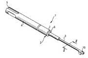 図2に示すように、シャフト2における小径の前方部分3は楕円形の断面形状を有する。その断面形状部分における最大径a(楕円断面の場合の長径)と、これに対して垂直に延在する最小径b(楕円断面の場合の短径)との長さ比a/bは、約1.8:1〜約1.4:1とすることができる。この断面形状は前方部分3の全長に亙って維持し得るものであるが、図1に示すように、前方部分3の一部だけを局部的に上記断面形状に形成してもよい。その場合には、図2に示すように断面形状が円形又は楕円形の移行領域が形成される。なお、後方部分4における受孔7が設けられた前端面は、当接肩部6を構成するものである。