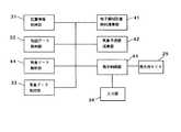到着時刻演算手段としての格子領域到着時刻演算部41は、現在地から各格子領域に移動した場合の各格子領域への推定到着時刻を演算する。また、気象予測値演算手段としての気象予測値演算部42は、格子領域到着時刻演算部41により得られた演算結果および気象データ解析部44より得られた格子気象データテーブルに基づいて、各到着時刻における各格子領域の予測天気を演算する。そして、表示用モニタ25の表示を制御する表示制御部45は、気象予測値演算部58によって得られた予測天気を地図データ上に示した表示画像データを生成する。