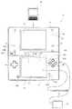 さらに、下側ハウジング11の上側面には、メモリカード29を収納するための挿入口(図1では、一点鎖線で示している)が設けられている。この挿入口の内側にも、ゲーム装置1とメモリカード29とを電気的に接続するためのコネクタ(図示せず)が設けられる。メモリカード29は、画像通信プログラムやゲームプログラム等を記憶した記憶媒体であり、下側ハウジング11に設けられた挿入口に着脱自在に装着される。  Further, an insertion slot (indicated by a one-dot chain line in FIG. 1) for storing the