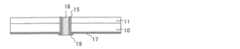 図1は、本実施例の半導体装置の構造を示す断面図である。本実施例の半導体装置では、シリコンウエハからなる半導体基板10上には素子形成部11が形成され、それぞれを貫通する貫通孔が形成され、貫通孔側壁には、絶縁性の金属酸化膜19が形成され、貫通孔内には、シード膜15を介して金属からなる導電材料16が充填されている。半導体基板10の裏面には裏面絶縁膜17が形成されている。  FIG. 1 is a cross-sectional view showing the structure of the semiconductor device of this example. In the semiconductor device of this embodiment, an