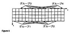 別の実施形態では、ダウンリンクの場合、クラスタはグループに分割される。各グループは、複数のクラスタを含んでいてもよい。図6は、代表的な分割例を示している。図6に示すように、グループ1−4は、グループ分けの結果として各グループに入れられたクラスタを指す矢印で示されている。或る実施形態では、各グループ内のクラスタは、帯域幅全体に亘って遠く離されている。或る実施形態では、各グループ内のクラスタは、チャネルコヒーレンス帯域幅、即ちその中のチャネル応答が概ね同じである帯域幅、よりも更に離されている。コヒーレント帯域幅の代表的な値は、多くのセルラーシステムについて100kHzである。これは、各グループ内の周波数ダイバーシティを改善し、グループ内のクラスタの少なくとも一部が高SINRを提供できる確率を上げることになる。クラスタは、グループに割り当てられる。グループベースのクラスタ割当の目的には、クラスタ指標付けのデータビットを減じ、これにより、クラスタ割当用のフィードバックチャネル(情報)と制御チャネル(情報)の帯域幅要件を緩和することである。グループベースのクラスタ割当は、セル間干渉を低減するためにも使用される。In another embodimentof group-based cluster allocation , in the case of the downlink, the clusters are divided into groups. Each group may include a plurality of clusters. FIG. 6 shows a typical division example. As shown in FIG. 6, groups 1-4 are indicated by arrows pointing to the clusters that are placed in each group as a result of grouping. In some embodiments, the clusters in each group are far apart across the entire bandwidth. In some embodiments, the clusters within each group are further separated than the channel coherence bandwidth, i.e., the bandwidth within which the channel response is approximately the same. A typical value for coherent bandwidth is 100 kHz for many cellular systems. This will improve frequency diversity within each group and increase the probability that at least some of the clusters in the group can provide high SINR. Clusters are assigned to groups. The purpose of group-based cluster allocation is to reduce the data bits for cluster indexing, thereby relaxing the bandwidth requirements of the feedback channel (information) and control channel (information) for cluster allocation. Group-based cluster assignment is also used to reduce inter-cell interference.