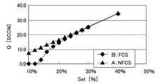 前記二つのパラメータm、nの値は、計測すべき流量範囲、ガス種に依存するものであり、前記したm=0.47152及びn=0.59492の値は、流量が10〜30sccmの領域において成立する値であるが、流量範囲が10〜100sccmや100〜1000sccmになると、mとnの値はこれらの値からずれてくる。