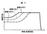 ONとする。照射条件イは、体表面近くの浅い部分で生じるブラッグピークがなくなるため、図7に示す深さ方向の線量分布イのように線量分布アよりもフラット部分が狭くなったSOBP幅が形成される。5 and 6, in the circumferential direction of the