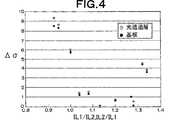 図4に表1から表4までの結果をまとめて示す。図4において、横軸は光透過層側から記録層にレーザ光を入射した場合(実施例1及び実施例2に相当)にはIL1/IL2を、PC基板側から記録層にレーザ光を入射した場合(実施例3及び実施例4に相当)にはIL2/IL1を、それぞれ表している。また、図4の縦軸は、ランド対応部分L’及びグルーブ対応部分G’のジッタの差の絶対値Δσを示している。図4から分かるように、記録によって反射率が低下するか増加するかに関わらず、光透過層側から記録層にレーザ光を入射した場合には、1<IL1/IL2<1.3、特に、1.1<IL1/IL2<1.3の場合に、また、PC基板側から記録層にレーザ光を入射した場合には、1<IL2/IL1<1.3、特に、1.1<IL2/IL1<1.3の場合に、ランド対応部分L’及びグルーブ対応部分G’のジッタのバランスが非常に良く取れていることが分かる。
