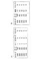 この演奏データの抽出および加工について具体的に説明する。例えば、演奏データ記憶領域に音高C3,E3,G3に関する演奏データが記憶されている場合、図5(A)に示す発音パターンデータによれば、キーデータ「1」、「2」、「3」により、それぞれ音高C3,E3,G3を表す演奏データが抽出される。そして、これらの演奏データは、オクターブデータ「+0」によりそのまま維持され、またオクターブデータ「+1」により1オクターブだけアップされる。加工された演奏データが図5(B)の音高として示されている。図6(A)および図6(B)は、演奏データを前記例と同じにして異なる発音パターンデータの例を示している。