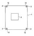 一方、図8に例示したように、プリント基板1としては、ボールグリッドアレイ(BGA)6を実装したものがある。BGA6は、その下面に配列された端子とソルダーボールとを備えていて、プリント基板に実装するときにはソルダーボールを溶融させることによって上記端子とプリント基板1の導体パターンとを接続するものであるため、BGA6を搭載したプリント基板1がいびつな反り変形を起こしていたりすると、BGAが経時的にプリント基板の板面から浮き上がって上記端子と上記導体パターンとの接続箇所が剥離したり破壊したりするおそれが生じ、そのことが機器の信頼性を大幅に低下させる要因になる。なお、図8は図6で説明した支持構造による取付箇所を示していて、12はねじ挿通孔、2は半田盛りパターンである。On the other hand, as illustrated in FIG. 8, as the printed
