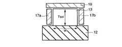 次に、図17乃至図19に示すように、ゲート絶縁膜18上にSOI層13の上面ゲート電極となる導電材が形成されてパターニングされ、この導電材からなるゲート電極19が形成される。ここで、ゲート電極19の材料としては、例えば、ポリシリコン等があげられる。  Next, as shown in FIGS. 17 to 19, a conductive material to be an upper surface gate electrode of the