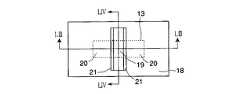 次に、図20乃至図22に示すように、イオン注入により、SOI層13内にソース/ドレイン領域20が形成される。次に、SOI層13の側面に側壁絶縁膜21が形成される。その後は、通常のCMOS作製手順に従うことで完成する。  Next, as shown in FIGS. 20 to 22, source /