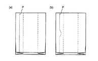 図2は、衛生用品等の内容物を充填する前の折り畳んだ状態の包装袋の正面図である。図2−aのように、両シール部を設ける前に、開封用ミシン目Pを流れ方向に直線状に設けている。