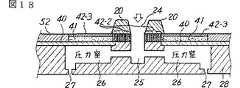 しかし、高密度のノズルのヘッドを形成するには、各部の寸法が、ミクロン単位となるため、半導体プロセスを用いて作成する必要がある。このようにすると、個別電極層42と、圧電層41は、ともに圧力室26毎に、形成するため、同一のマスクで形成したほうが、製造工程上有利である。又、個別の圧電層41を形成するため、金属をエッチングする場合には、個別電極層42を損傷せずに、形成することは、極めて困難であり、実現が難しい。このため、前述の先の出願では、配線部分にも、圧電層を残していた。