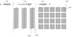 さらに、シールリング領域112の多重のシールリング間にダミービアを配置することもできる。これによっても、ダミービア136が形成された第二の層間絶縁膜122の強度を高く保つことができるとともに、上下層との密着性を良好にすることができる。また、シールリングの内側(シールリング領域112と回路領域110との間)にダミービアを配置することもできる。  Further, dummy vias can be disposed between multiple seal rings in the