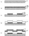 次に、フォトリソグラフィ技術とエッチング技術(ウエットエッチングまたはドライエッチング)により、第1の調整層15と上部電極膜14とを所望の形状にパターニングする(図5(a))。なお、この第1の調整層15と上部電極膜14のパターニングをリフトオフにより実行することとしてもよい。  Next, the