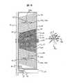 この場合にも、透過表示部の配向方向に対して45度をなす反射表示部の配向方向は、図6と図8に示した2種類が存在する。何れも第二の基板に近接する面では反射表示部の配向方向が透過表示部と同様であるが、第一の基板に近接する面では45度異なり、透過表示部の配向方向を基準にすると、図6では時計回りに45度異なり、図8では反時計回りに45度異なる。 Also in this case, there are two types of orientation directions of the reflective display portion, which are 45 degrees with respect to the orientation direction of the transmissive display portion, as shown in FIGS. In both cases, the orientation direction of the reflective display portion is the same as that of the transmissive display portion on the surface close to the second substrate, but differs by 45 degrees on the surface close to the first substrate, and based on the orientation direction of the transmissive display portion. 6 differs by 45 degrees clockwise and in FIG. 8 by 45 degrees counterclockwise.